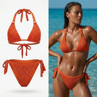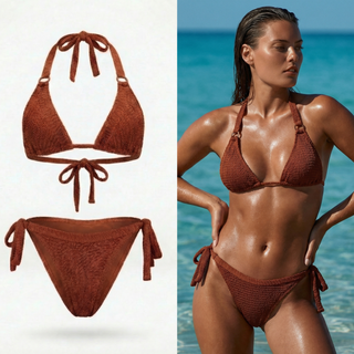 Obsessed with this bikini. The texture is unique, fit is secure, and the color screams summer. Great for both pool days and tanning.