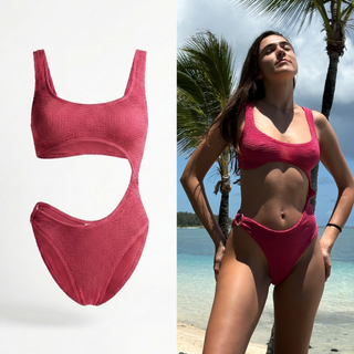 The crinkle fabric feels luxe and fits perfectly after sizing up. The Miami color pops, and it keeps its shape after swimming. So flattering!